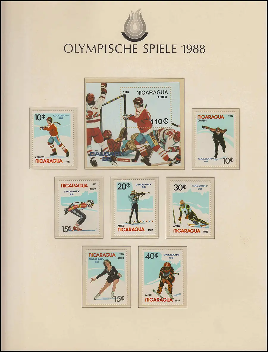 Jeux olympiques 1988 Calgary - Nicaragua, 1 bloc + 1 ensemble de sports d'hiver **
