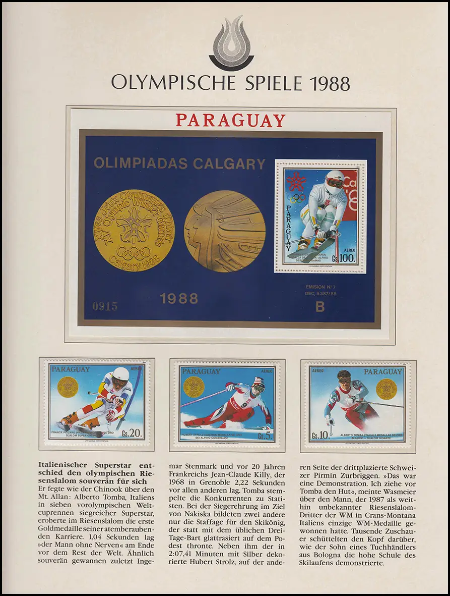 Jeux olympiques 1988 Calgary - Paraguay, bloc + jeu de départ Slalom **