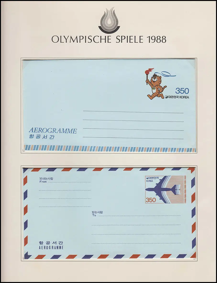 Jeux olympiques 1988 Séoul - Corée du Sud 2 lettres Aérogrammes & avions