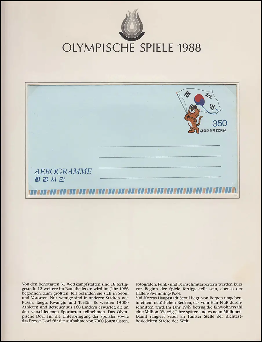 Jeux olympiques 1988 Séoul - Corée du Sud 3 lettres Aérogrammes & avions