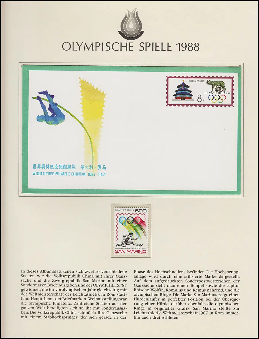 Jeux olympiques 1988 Séoul - Ensemble: Chine 1 entier + Saint-Marin 1 marque, **