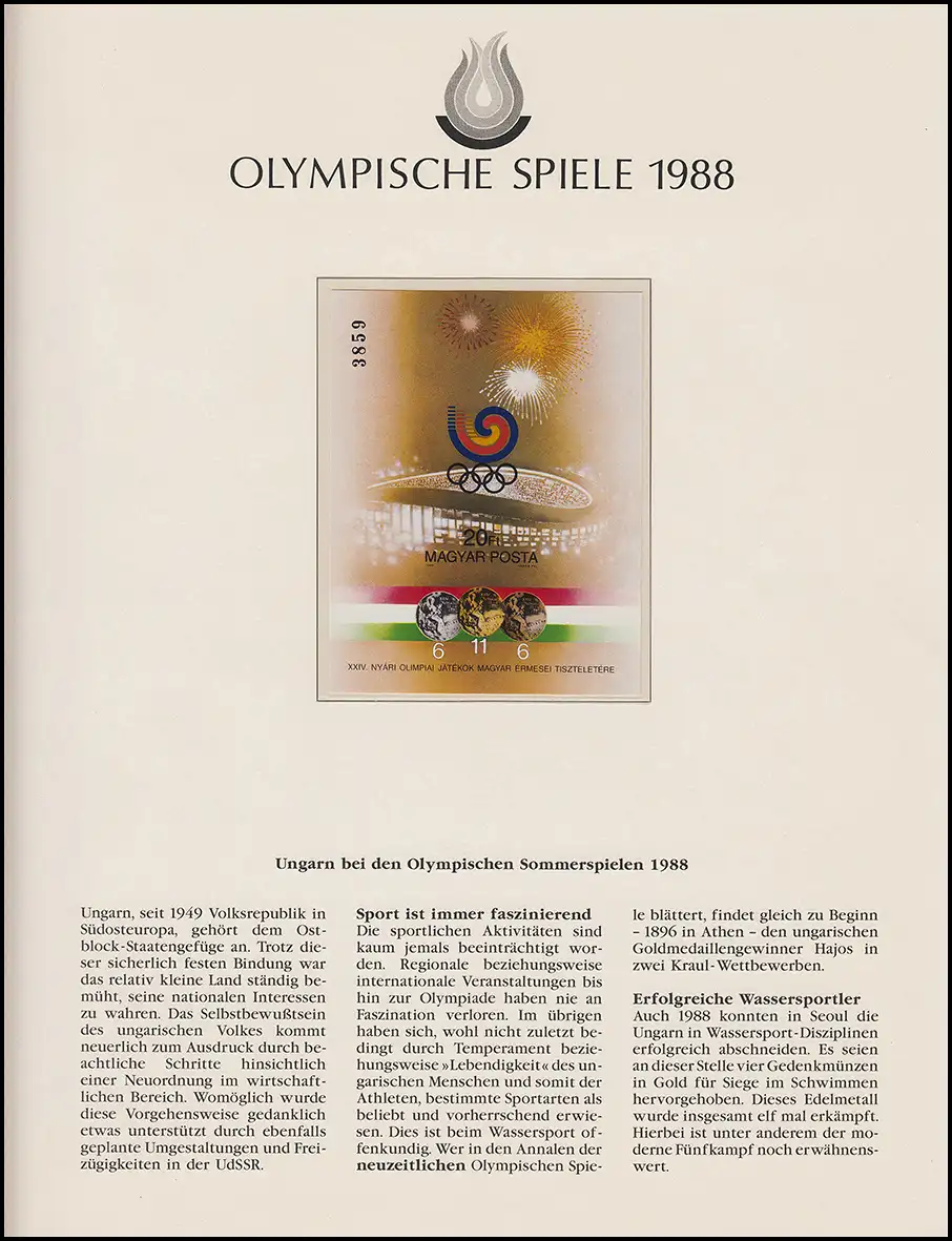 Jeux olympiques 1988 Séoul - Hongrie Block médailles Stadium non-dentelé **