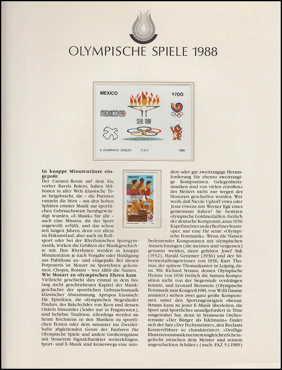 Jeux olympiques 1988 Séoul - Mexico block non-denté + marque Sports **