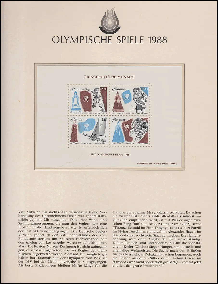 Jeux olympiques 1988 Séoul - Monaco Block ** frais de port