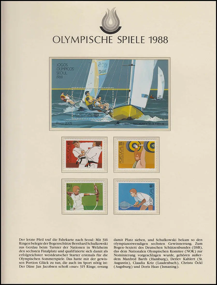 Jeux olympiques 1988 Séoul - Portugal, bloc + ensemble, tir à l'arc, voile **