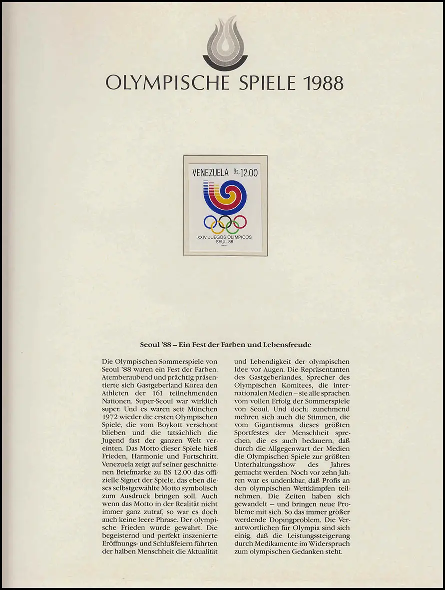 Jeux olympiques 1988 Séoul - Venezuela, marque, emblème, signet, frais de port **