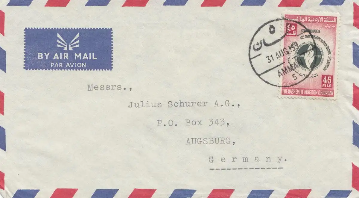 Jordan: Amman 1959: air mail to Augsbourg