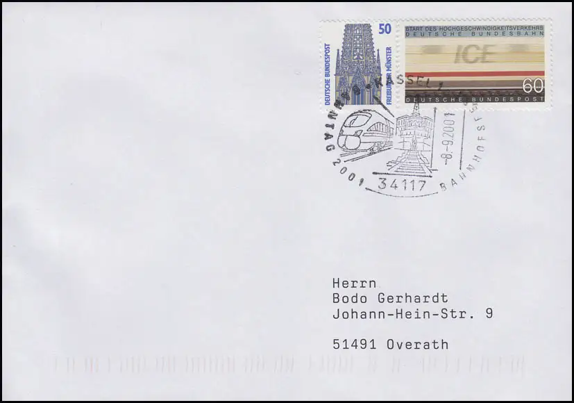 Jour de la voie ferrée Kassel 2001 & ICE & Bergpark Wilhelmshöhe, Lettre SSt KaSsel 8.9.2001