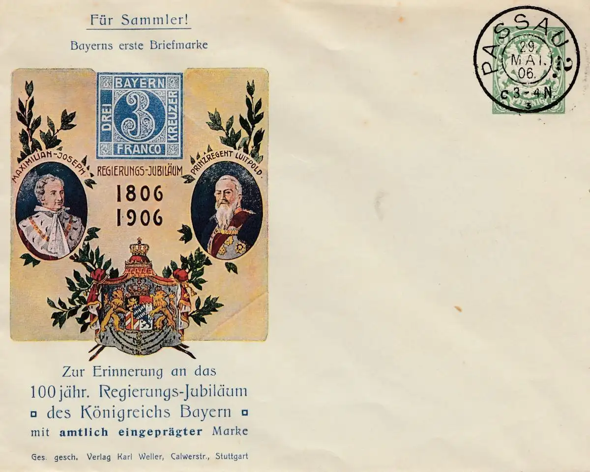 Ganzsache Jubiläum 100 Regierung Bayern: Rückseitig Bierwerbung mit Fass 1906