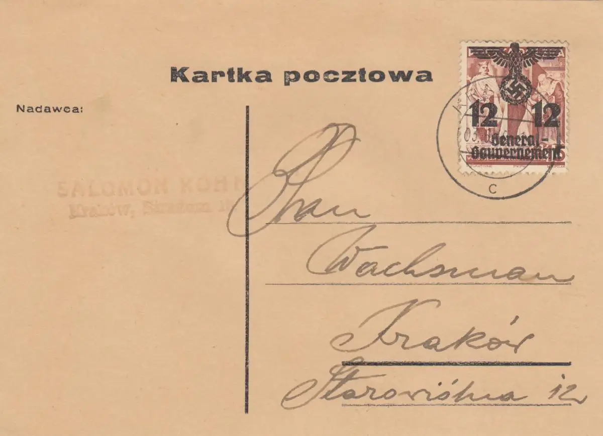 Judaika: GG: Carte postale de Cracovie Salomon Kohn, loin