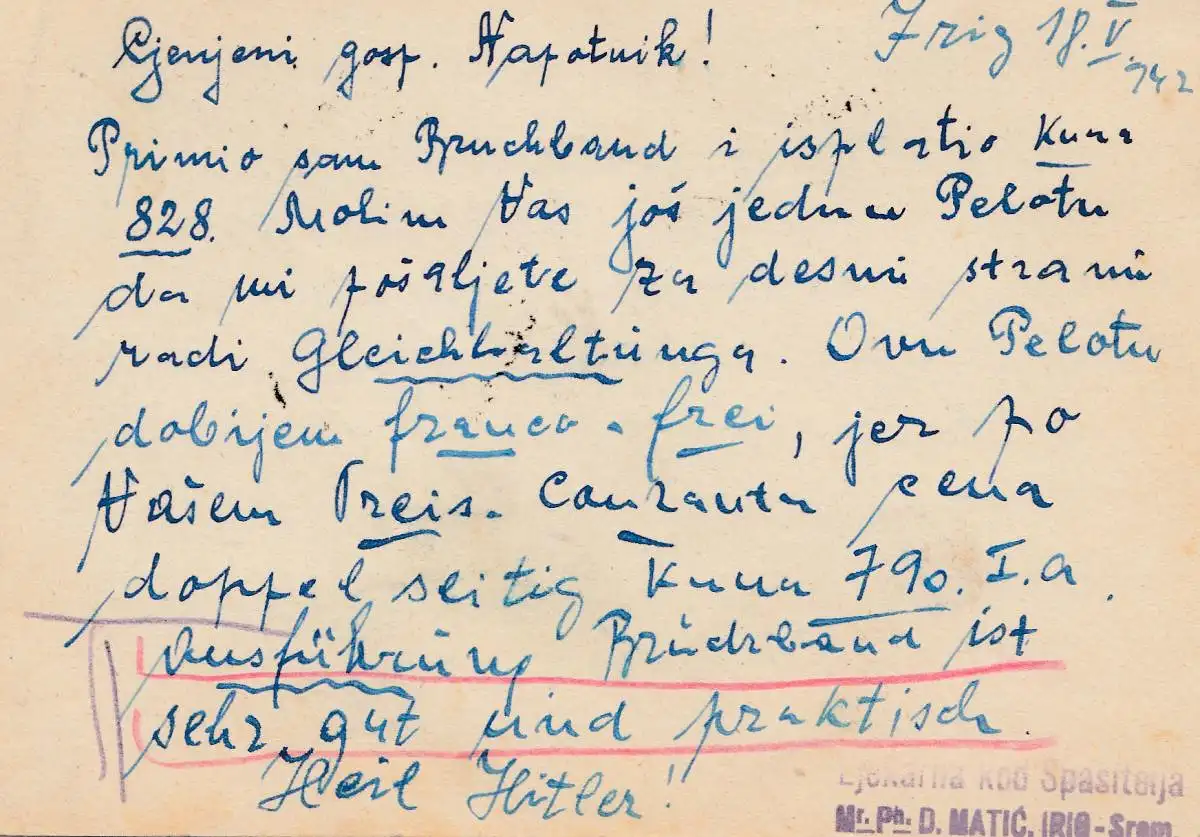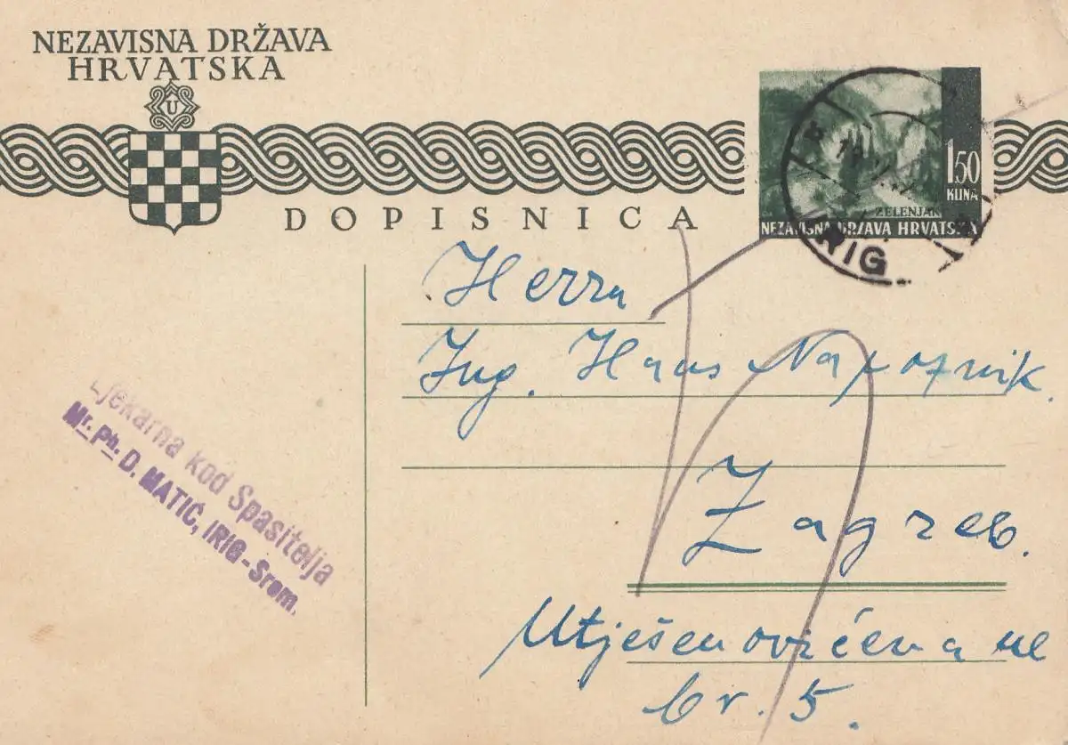 Yougoslavie: 1942: entier Irig-Srom après Zagreb
