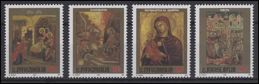 Yougoslavie: Fresques & Peintures murales - Saint 1996, 4 valeurs, ensemble **