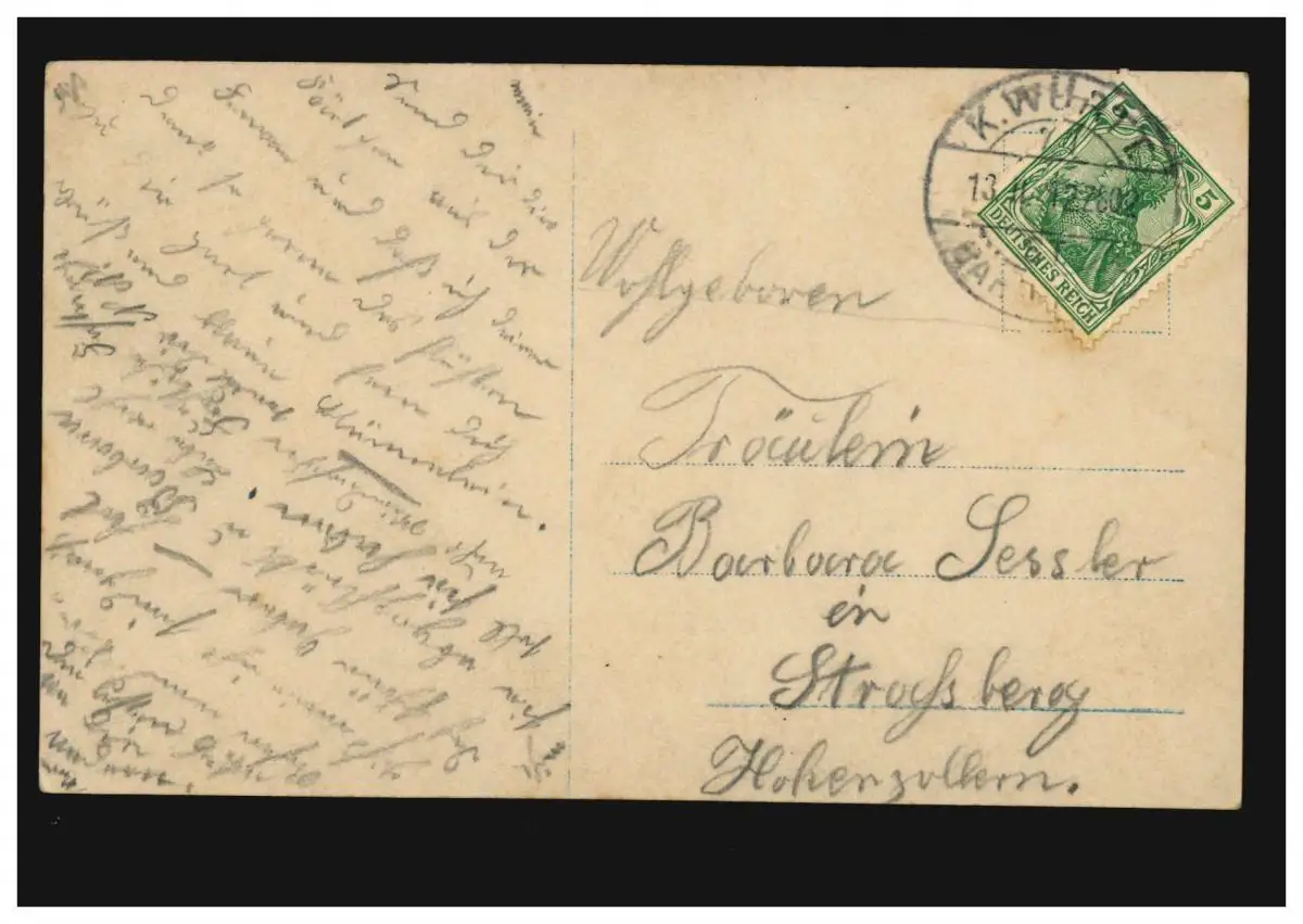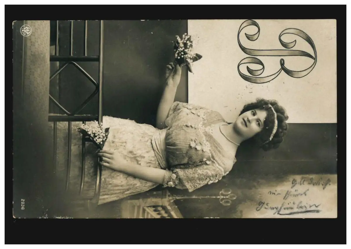K. WÜRTT. BAHNPOST ZUG 602 - 13.2.12, Mode AK Femme avec Maiglocket lettre B