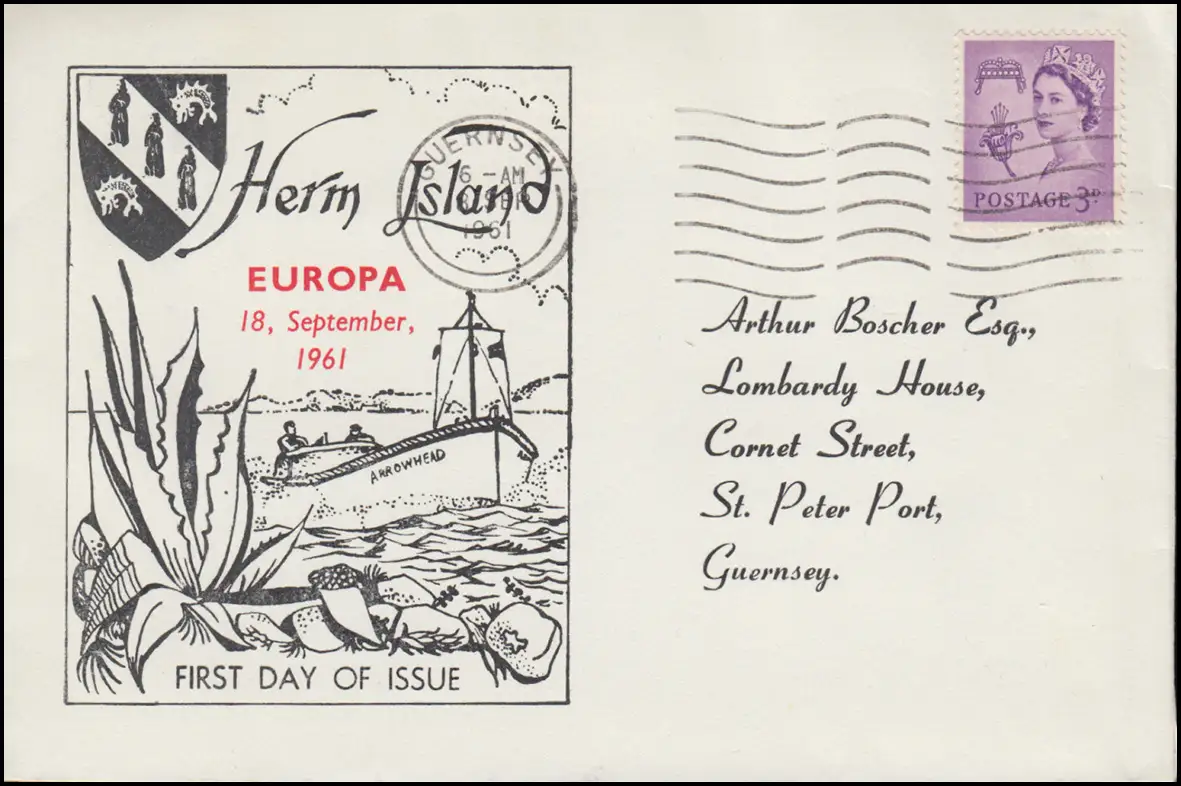 Île de Canal Herm Island FDC avec des marques imprimées Europe 18.9.1961