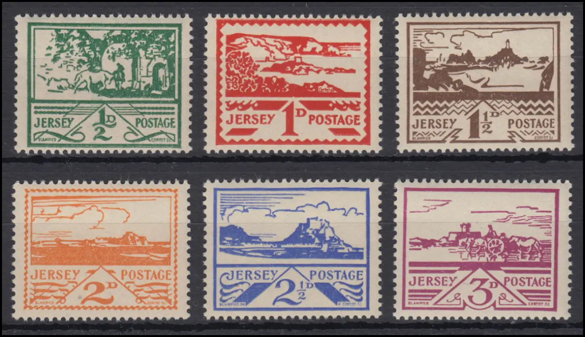 Îles Anglo - Jersey 3-8 vues, six valeurs ensemble ** post-fraîchissement