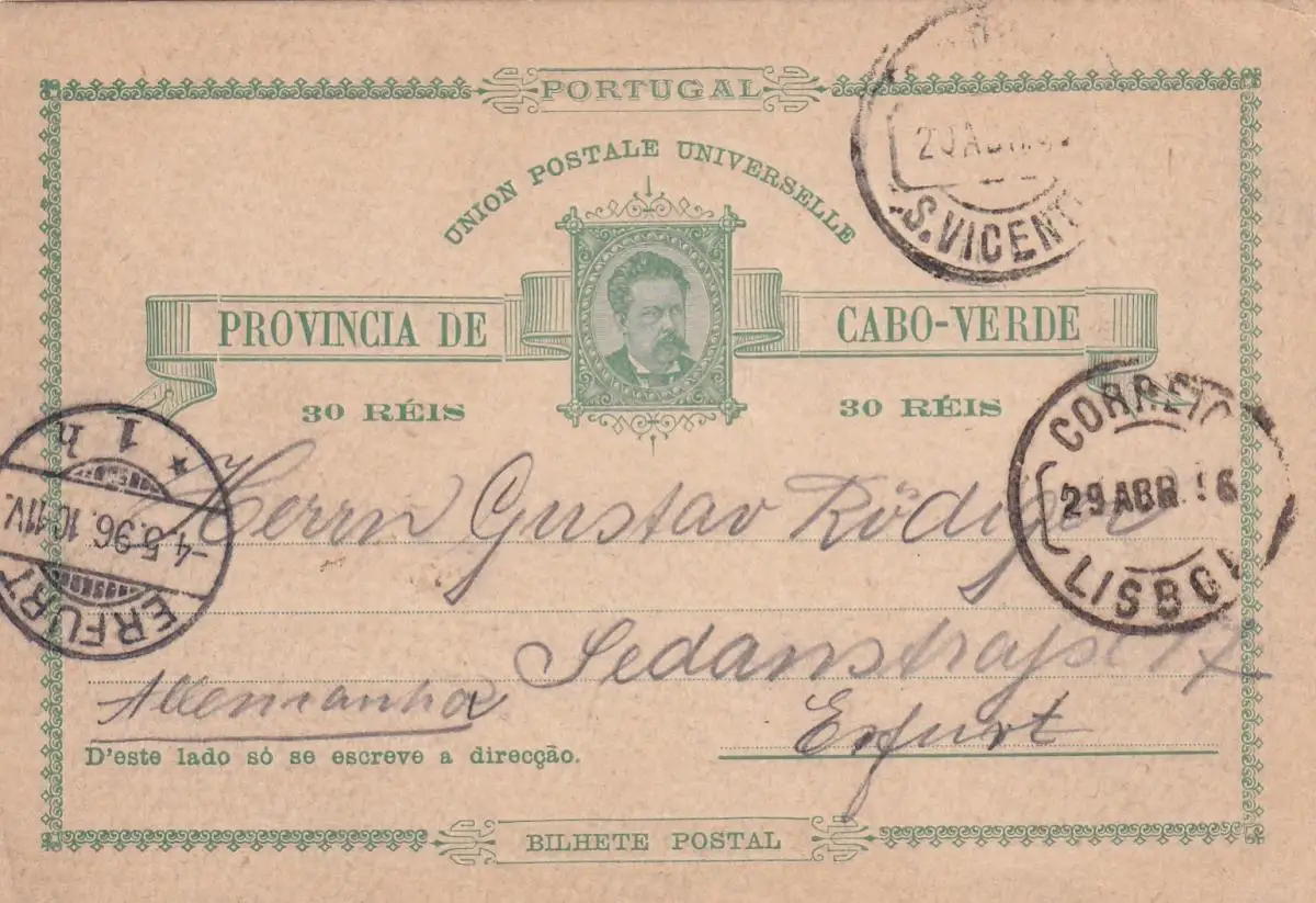 Cap-Vert, post card to Erfurt