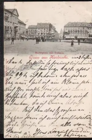 Karlsruhe. Gruss aus Marktplatz mit Rathaus