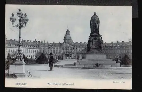 Karlsruhe. Karl Friedrich Denkmal - Gelaufen 1910. (NPLZ 76000).