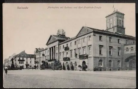 Karlsruhe. Marktplatz mit Rathaus und Karl Friedrich Straße