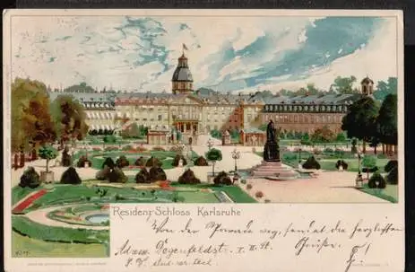 Karlsruhe. Residenzschloss - Gelaufen 1898. (NPLZ 76000).