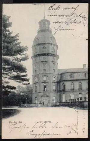 Karlsruhe. Schlossturm - Gelaufen 1905. (NPLZ 76000).