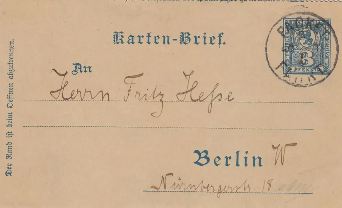 Cartes postales/Affaire générale Packet Tratt Berlin 1898