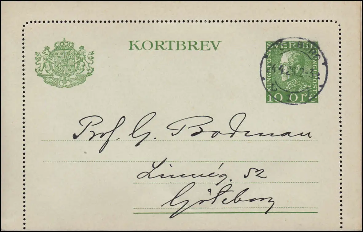 Carte postale K 22 KORTBREV 10 Öre, carte postale locale GÖTEBORG 24.4.26, carte avec bord