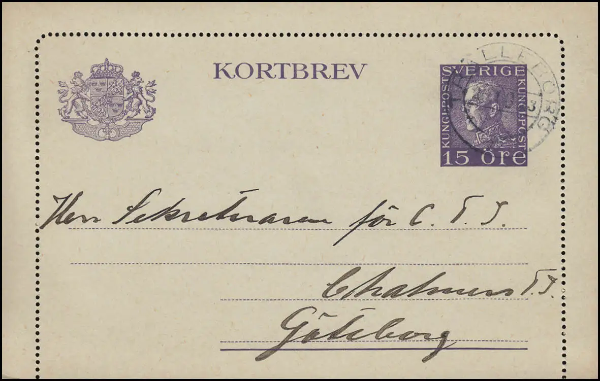 Cartes de la carte K 23 KORTBREV 15 Öre, TRÄLLEBORG 1923 vers Göteborg, carte avec bord