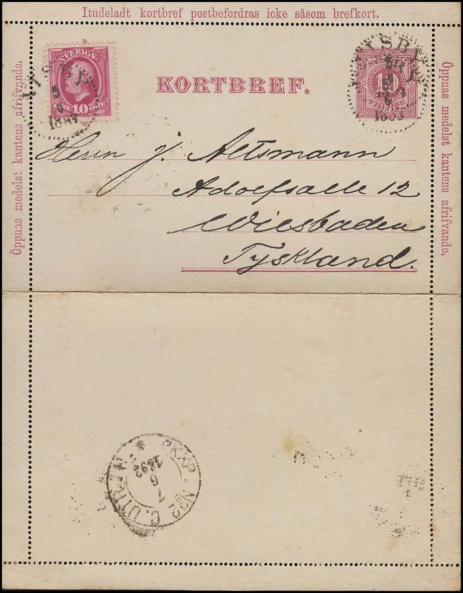 de VISBY 5.6.1893 comme carte postale à l'étranger vers l 'Allemagne, carte avec marge Numéro de catalogue: K4 Examen: original Référence produit: 00000000036928