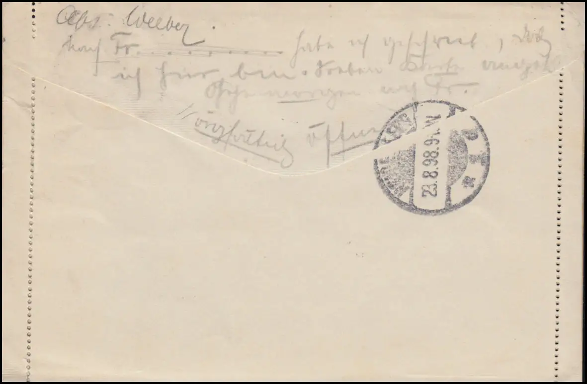 Lettre de carte K 6 Adler 10 Pf. OFFENBURG (BADE) 23.8.1898 vers Heidelberg