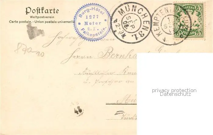 Kempten_Allgaeu Ruine Falkenstein am Rossberg Kempten Allgaeu postalisch gelaufen 1906 Erhaltung siehe scans [WerneD78] WernPID7