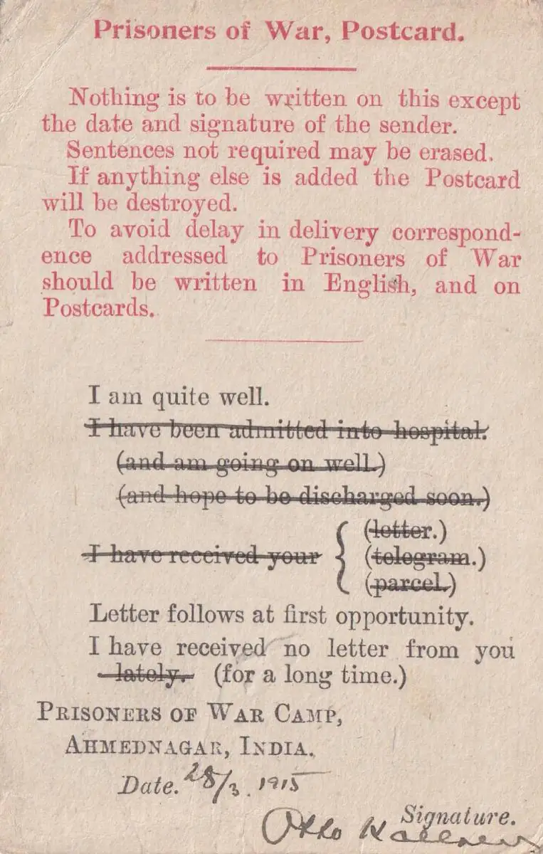 Kgf Post 1915: Inde Ahmednagar après l'Allemagne après Holstein