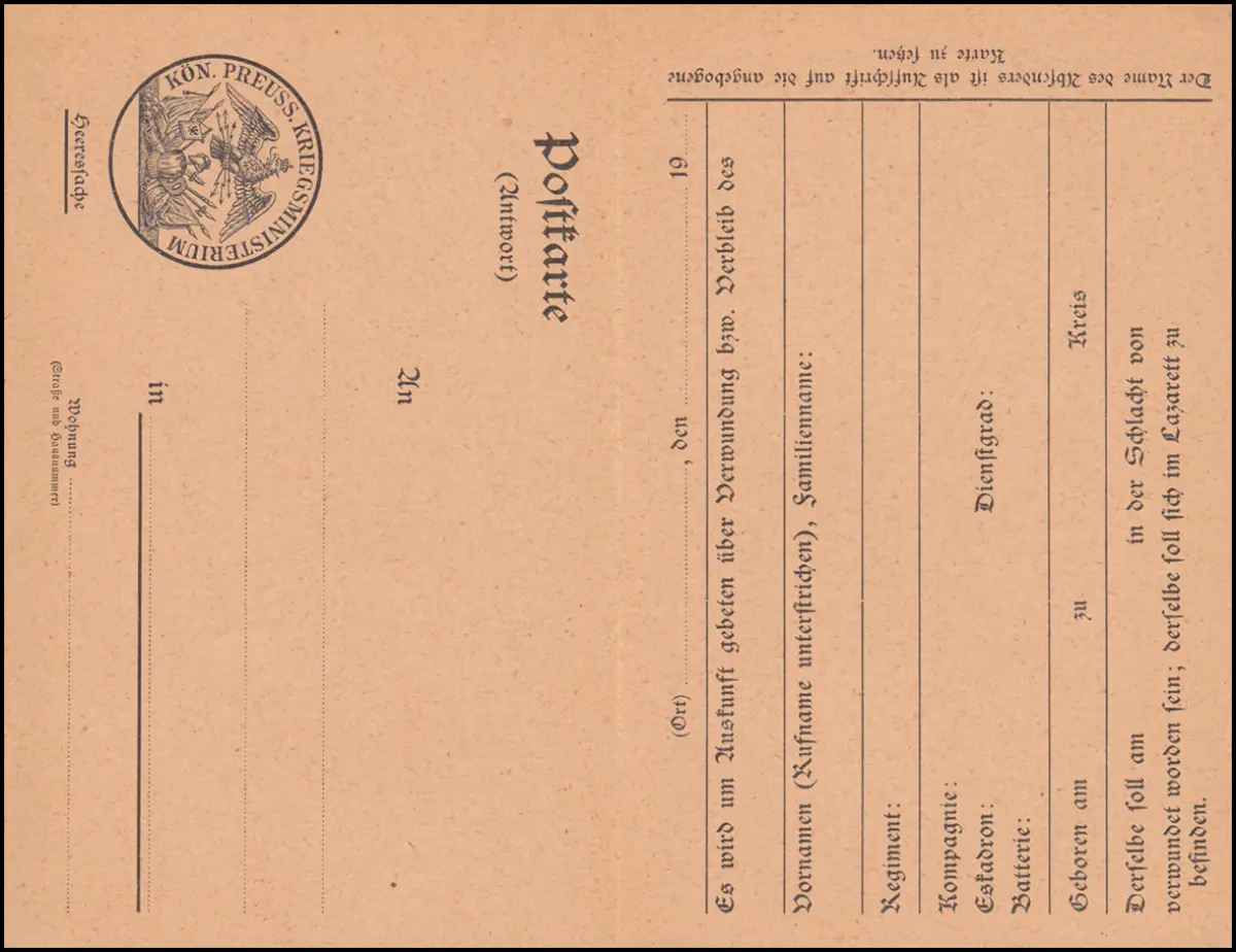 Carte double très bien reçue (avec carte de réponse jointe), toutes deux avec cachet imprimé du ministère de la Guerre Examen: original Numéro d'article: 00000000029251>Note: Cet article n'est disponible qu'une seule fois. Vous recevrez exactement l'élément représenté.