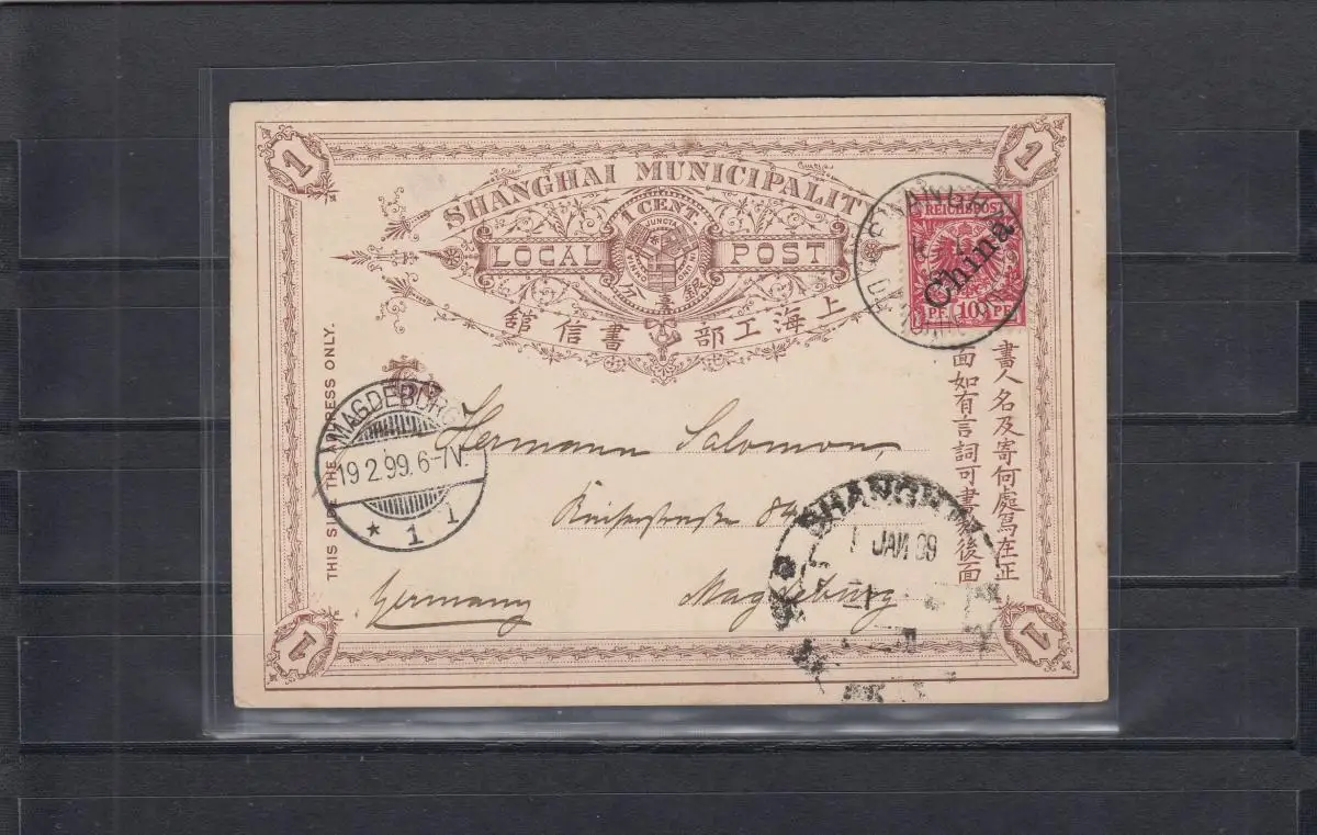 Kiaoutchou China 1899: Poste local Shanghai - Kiangyin vers Magdeburg