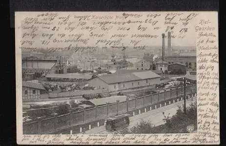 Kiel. Gaarden Kaiserliche Werft - Gelaufen. 1905. Briefmarke fehlt. (NPLZ 24100) Posiadamy rowniez konto zlotowkowe w Polsce.