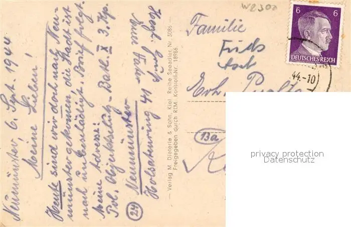 Kiel Partie am Kleinen Kiel Kiel postalisch gelaufen 1944 Erhaltung siehe scans [FriedD77] Frierer