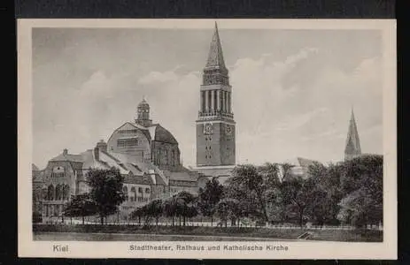 Kiel. Stadttheater, Rathaus und Katholische Kirche