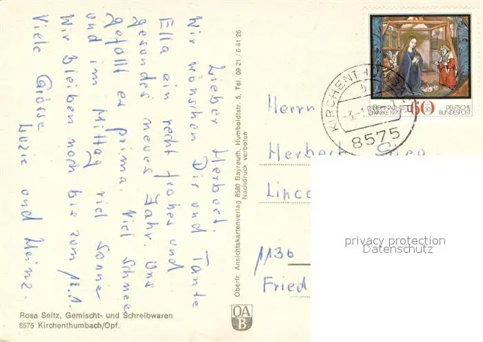 Kirchenthumbach Ortsansicht mit Kirche Denkmal Heiligenfigur Hauptstrasse Kirchenthumbach postalisch gelaufen 1980 Erhaltung siehe scans [FriedD77] Frierer