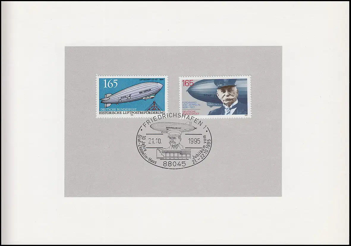 Carte pliante 10 ans de maison de Zeppelin GRAF FRIEDRICHSHAFEN SSt Portrait 21.10.1995