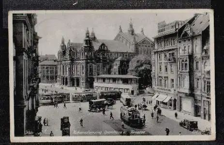 Köln. Hohenzollernring, Opernhaus und Terrasse - Gelaufen 1941. Briefmarke beschädigt. (NPLZ 50000)