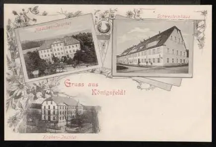 Königsfeld. Gruss aus Mädcheninstitut, Schwesternhaus, Knabeninstitut - Nicht gelaufen. (NPLZ 53426).