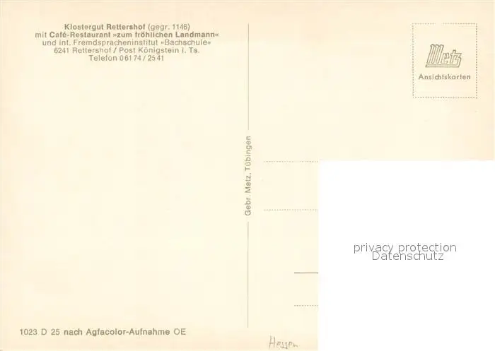 Koenigstein_Taunus Klostergut Rettershof Café Restaurant Zum froehlichen Landmann Koenigstein_Taunus postalisch nicht gelaufen nach 1965 Erhaltung siehe scans [FriedD77] Frierer