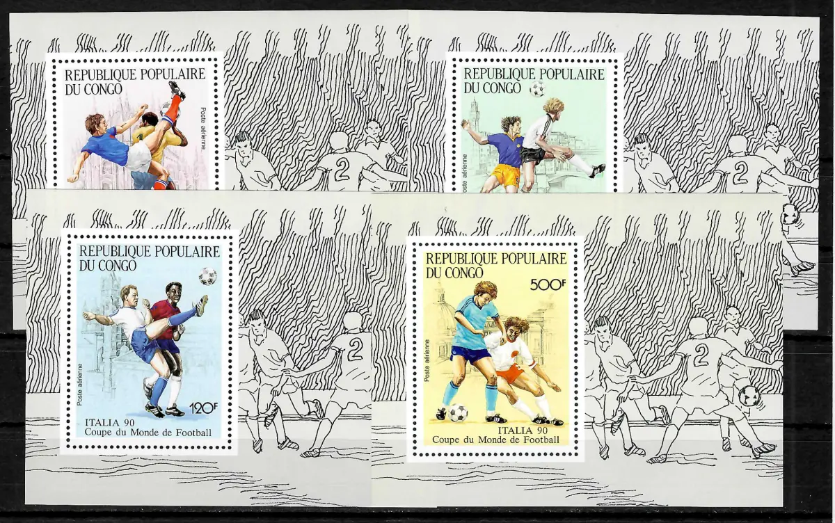 Kongo: Fußball WM: Italia 90, 2x Blocks, postfrisch