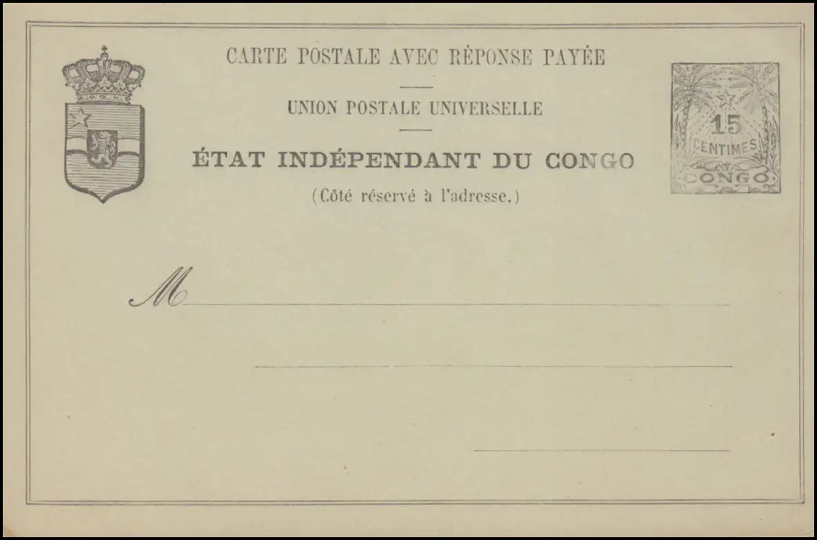 Congo: toute une affaire Carte postale double 10 / 15 centimes, vers 1895, inutilisé **