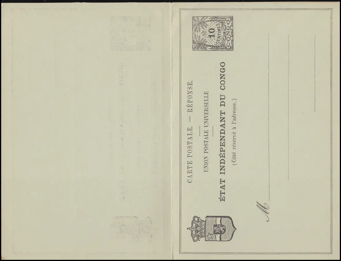 Congo: toute une affaire Carte postale double 10 / 15 centimes, vers 1895, inutilisé **