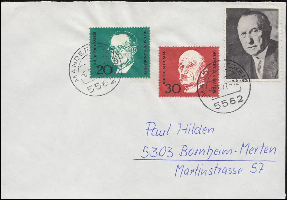 Konrad Adenauer - Vignette sur lettre du 6.1.77 MANDERSCHEID