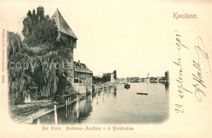 Konstanz_Bodensee Bodensee Ausfluss Rheinbruecke Konstanz_Bodensee postalisch gelaufen 1901 Erhaltung siehe scans [KathaD81] Kathoren