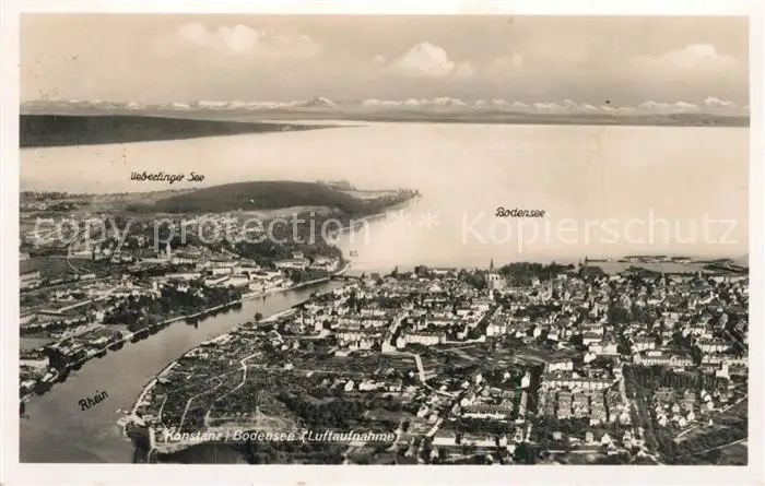 Konstanz_Bodensee Fliegeraufnahme mit Rhein und ueberlinger See Konstanz_Bodensee postalisch nicht gelaufen 1921-1965 Erhaltung siehe scans [WerneD78] WernPID7