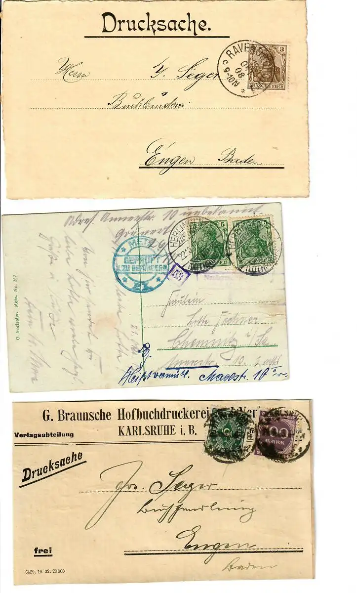 Convolue par 7 cartes/lettres de 1908-1924, expéditeurs parfois intéressants