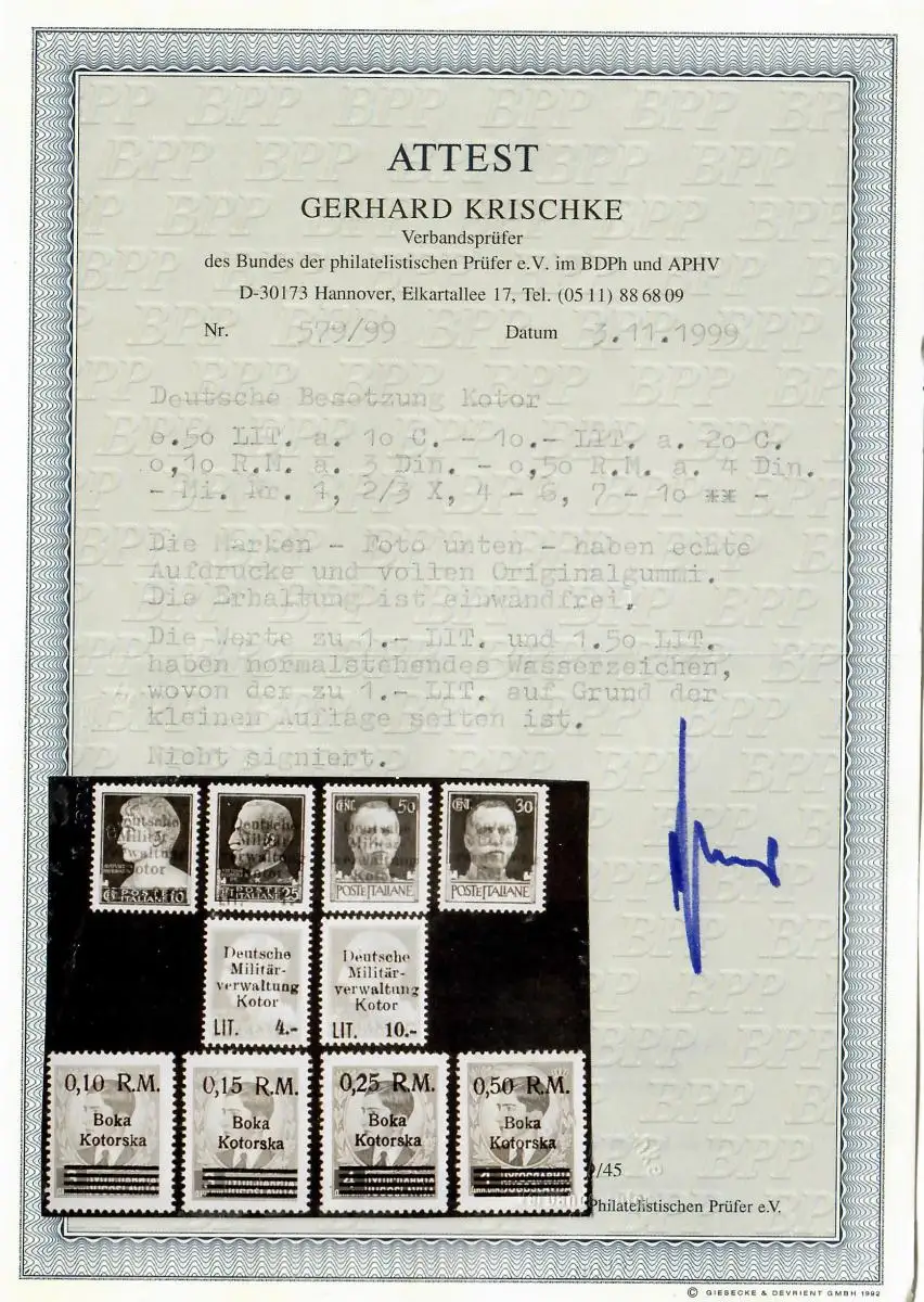 Voir Scan: Les marques 7-10 sont sur le certificat mais ne font pas partie de l'offre numéro d'article: 5003129 Vérification: BPP-Atest Référence produit: 00000005003128